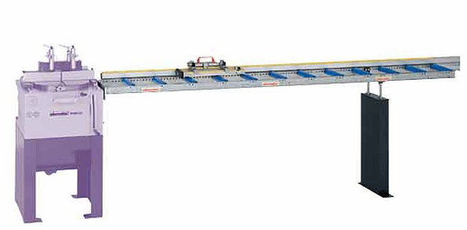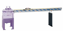 For precise cutting of aluminum profiles, this unit can be mounted on any single head mitre saw. The sliding stop is adjusted manually, and locked in place via two Kipp handles. Measurements are easy to read from the embedded tape thanks to a built in magnifying glass. Integrated into the measuring unit is a gravity roller table to support the profile during processing. Plastic rollers are standard to protect the surface of your extrusion from scratches. For pieces that are longer than the overall length of the measuring unit, the stop easily flips out of the way to allow extrusion to pass by it.