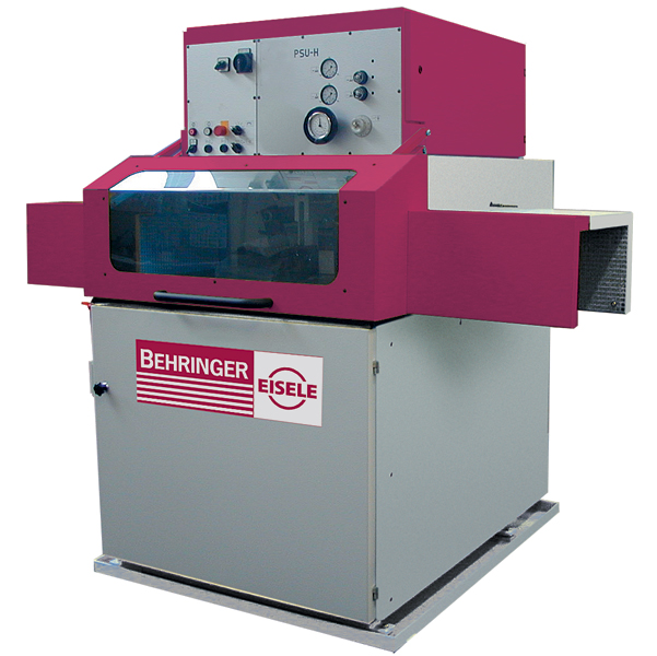 This is our most versatile semi-automatic cold saw for fabricating shops. Like all saws in the PSU series, the saw unit travels up from underneath the machine table, thereby ensuring safe, and easy access to the work area. The standard machine includes a fully enclosed safety hood, with safety interlock for the sawing area. Operating with a 470mm(18 ½”) sawblade and an adjustable material back fence this saw provides a very wide sawing range. Mitre cuts from 30 on the left side, through to 0 on the right side is achieved through the large turntable with engraved mitre scale. The heavy-duty base plate, and turn-table are both made from GGG60 material, and are therefore exceptionally durable and wear resistant.