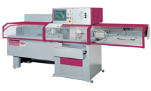 The newly developed controls of the saw provide very simple and quick set ups. Recurring saw orders/jobs, cut off lengths, quantities, as well as mitre settings can easily be programmed. With this control, even single cuts are completed just as easily as they would be done on a semi-automatic saw.